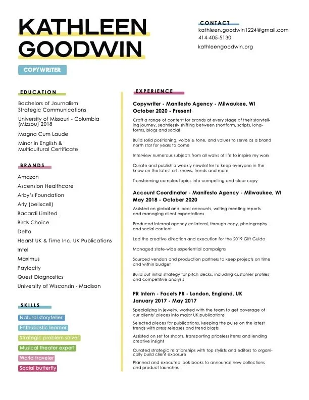 Check out my experience, education, and love of vibrant colors.